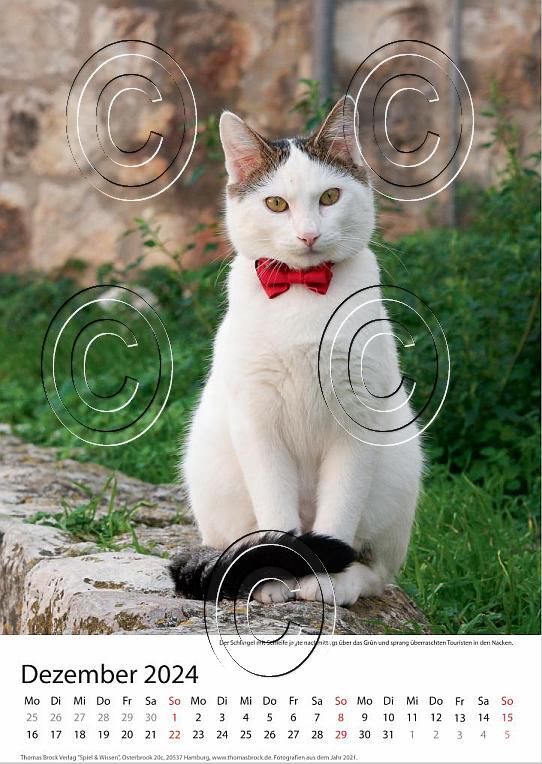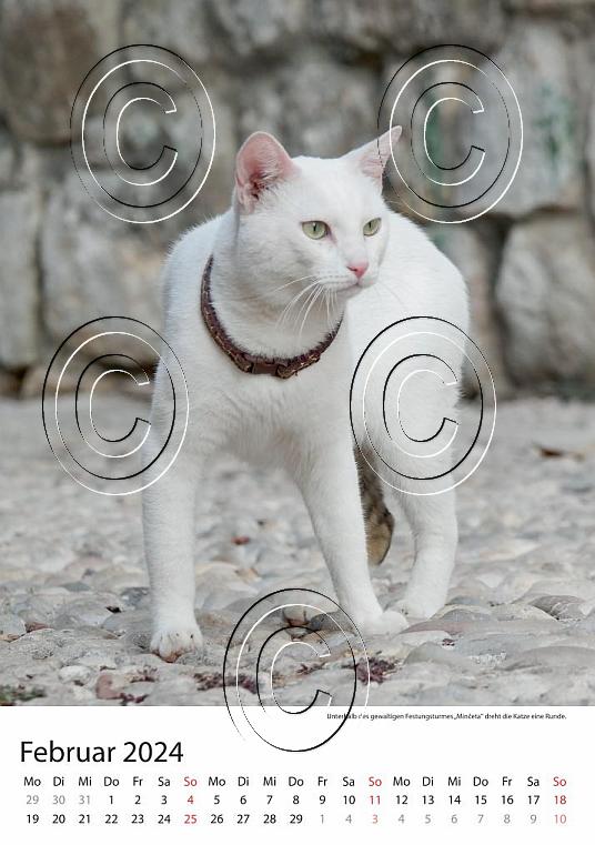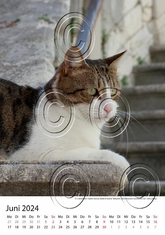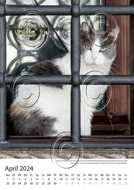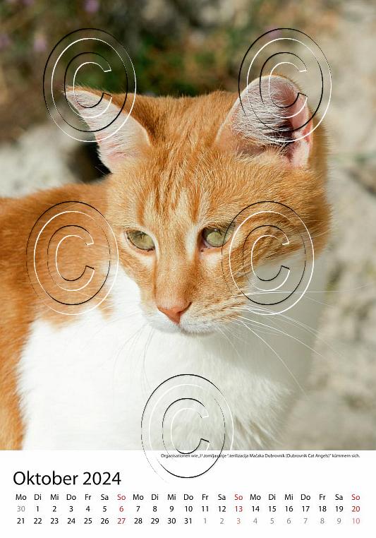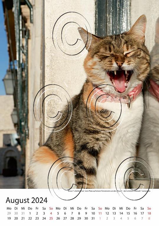 Dubrovnik ist nicht nur „Perle der Adria“ – sondern auch Eldorado für Katzen und deren Liebhaber: Zwischen den Festungsmauern der Altstadt tummelt sich ein äußert buntes und munteres Katzenvolk. Weltweit bekannt wurde 2022 Anastasia, die 18-jährige Katzendame vom Rektorenpalast († April 2023). Der Katzenkalender zeigt sie, aber unter anderem auch Jonny von den Jesuiten-Stufen, der regelmäßig den Fremdenführerinnen die Show stahl und Lala vom Gundulić-Platz.
