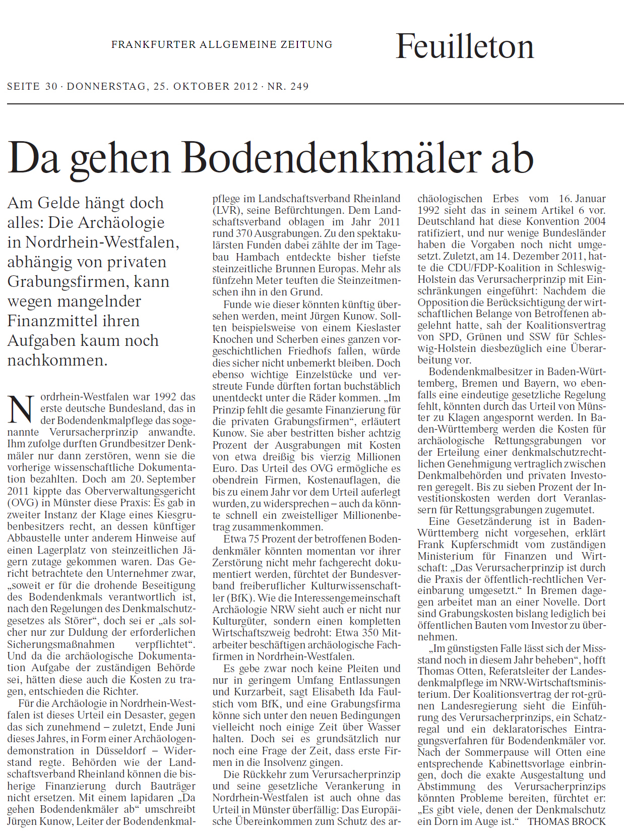 - Da gehen Bodendenkmäler ab (FAZ, Leserbrief der DGUF)